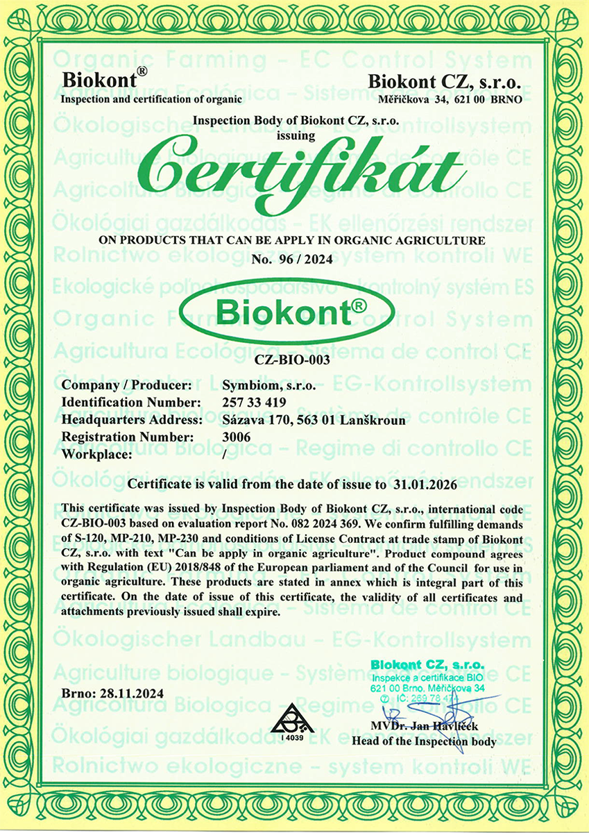 Symbiom naturlige produkter virker på plantens rotsystemer gjennom hele levetiden. De er permanent tilstede i jorda og trenger ikke tilsettes gjentatte ganger.